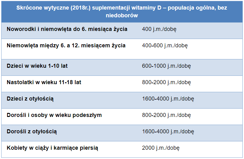 W tabeli przedstawiono właściwie wszystkie grupy wiekowe. Kto z nas powinien przyjmować witaminę D?
